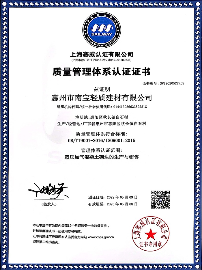 廣東省惠州市南寶輕質(zhì)建材有限公司成立于2007年,公司一直致力于新型環(huán)保的墻體材料的開發(fā)、生產(chǎn)和銷售服務(wù),生產(chǎn)的蒸壓加氣混凝土砌塊遍布惠州、深圳及周邊城市,以高品質(zhì)、高性價比的產(chǎn)品和優(yōu)良的服務(wù)質(zhì)量榮獲良好的行業(yè)口碑,公司于2020年再接再勵,投入3000余萬資金引進行業(yè)領(lǐng)先的6米全自動加氣混凝土砌塊生產(chǎn)線,具備年產(chǎn)量40萬方加氣混凝土砌塊的產(chǎn)能,同時使產(chǎn)品品質(zhì)、性能更加優(yōu)越。